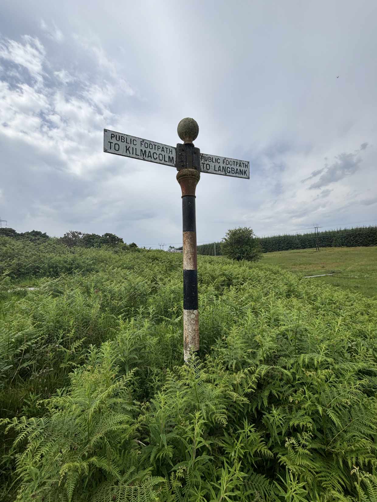 Old sign near Knockmountain for the public footpath between Kilmacolm and Langbank. (2025)